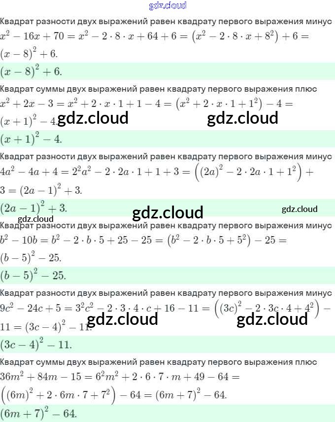 § 17. Преобразование многочлена в квадрат суммы или разности двух выражений. Страница 91-100 Ответы. Часть 1 по Алгебре 7 класс Рабочая тетрадь Мерзляк Алгоритм успеха Часть 1, 2 Вентана-граф