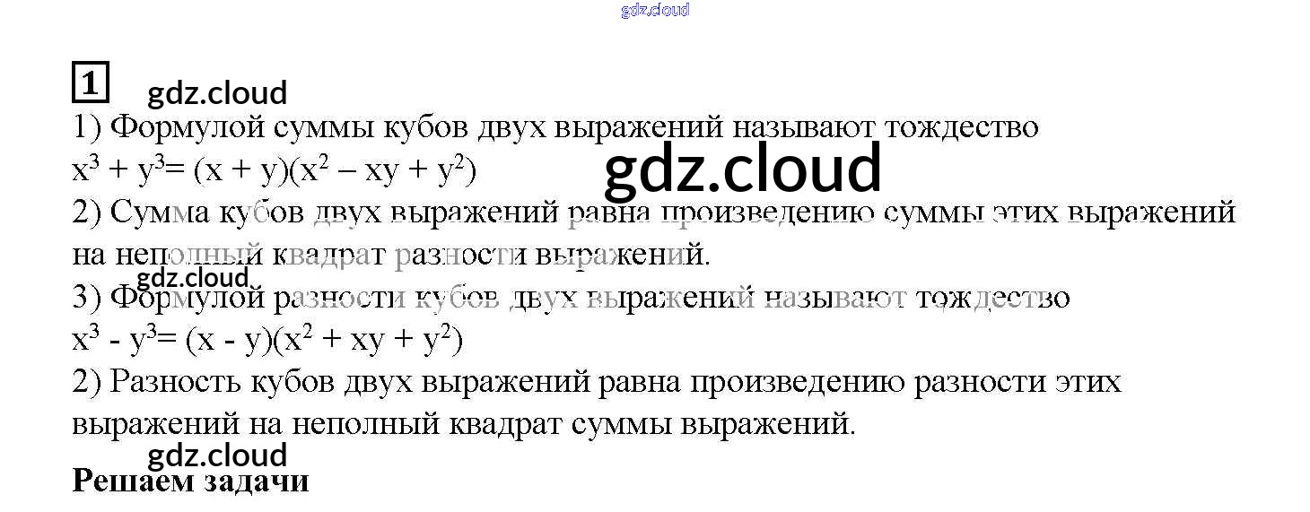 § 18. Сумма и разность кубов двух выражений. Страница 100-103 Ответы. Часть 1 по Алгебре 7 класс Рабочая тетрадь Мерзляк Алгоритм успеха Часть 1, 2 Вентана-граф
