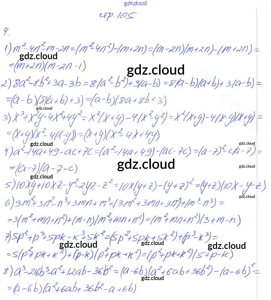 § 19. Применение различных способов разложения многочлена на множители. Страница 104-110 Ответы. Часть 1 по Алгебре 7 класс Рабочая тетрадь Мерзляк Алгоритм успеха Часть 1, 2 Вентана-граф