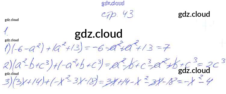 § 9. Сложение и вычитание многочленов. Страница 43-48 Ответы. Часть 1 по Алгебре 7 класс Рабочая тетрадь Мерзляк Алгоритм успеха  Часть 1, 2 Вентана-граф