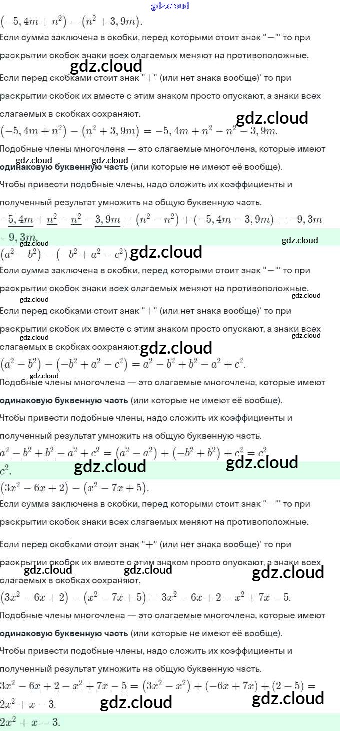 § 9. Сложение и вычитание многочленов. Страница 43-48 Ответы. Часть 1 по Алгебре 7 класс Рабочая тетрадь Мерзляк Алгоритм успеха  Часть 1, 2 Вентана-граф