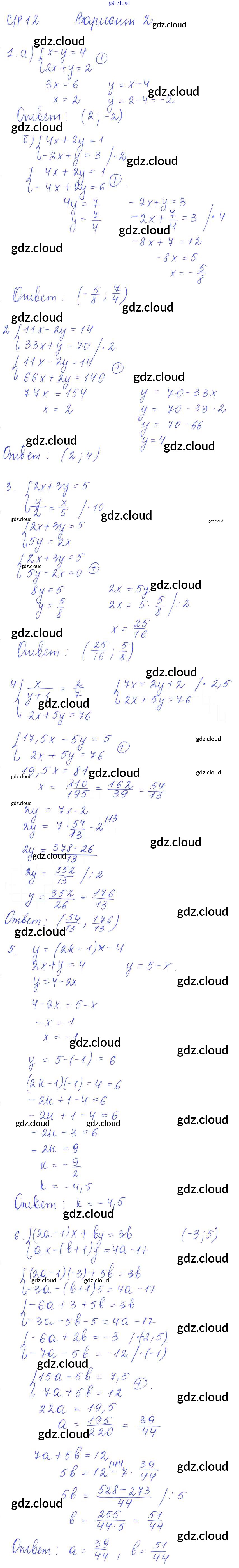 СР-12 Ответы к Самостоятельным работам. Варианты по Алгебре 7 класс Дидактические материалы Попов УМК Экзамен