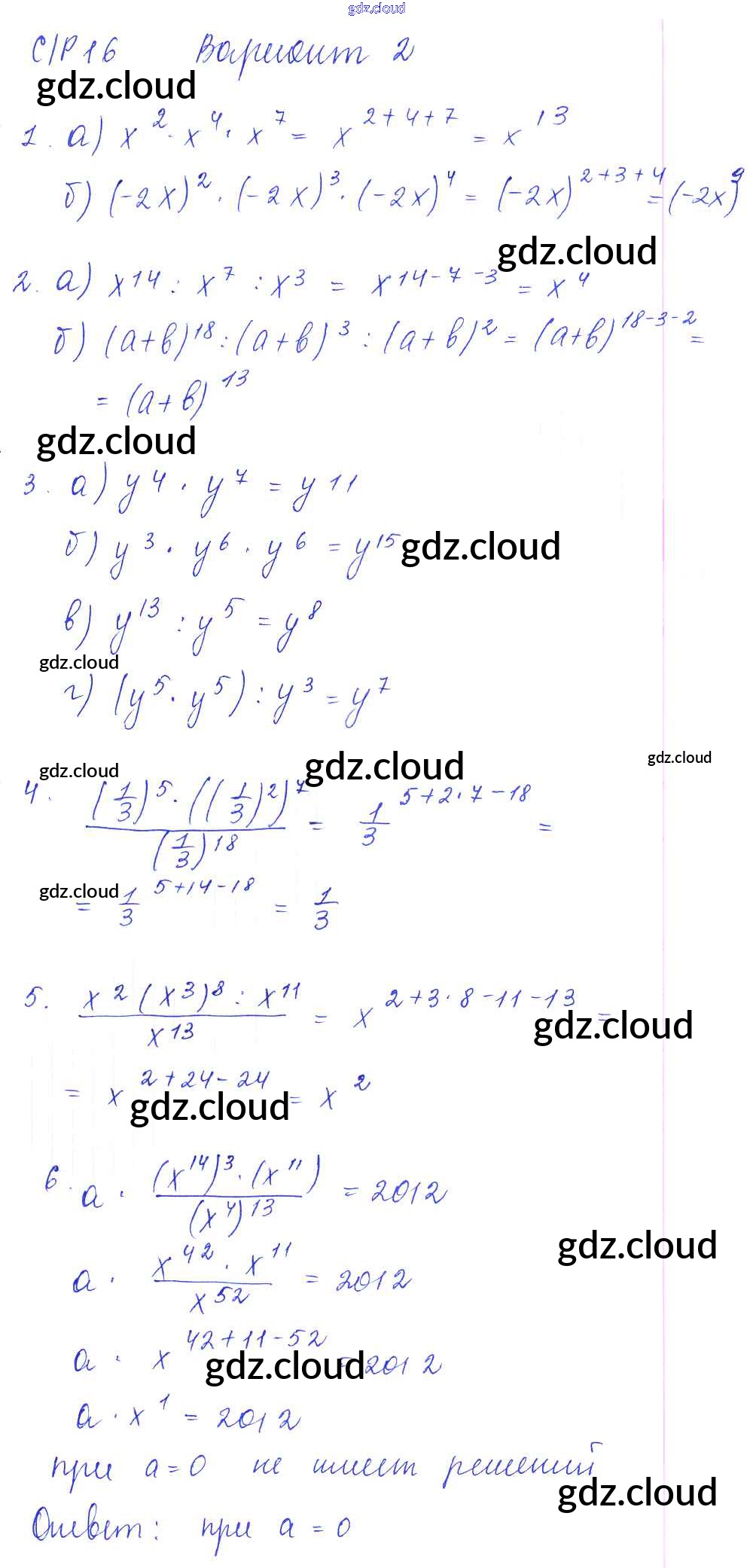 СР-16 Ответы к Самостоятельным работам. Варианты по Алгебре 7 класс Дидактические материалы Попов УМК Экзамен