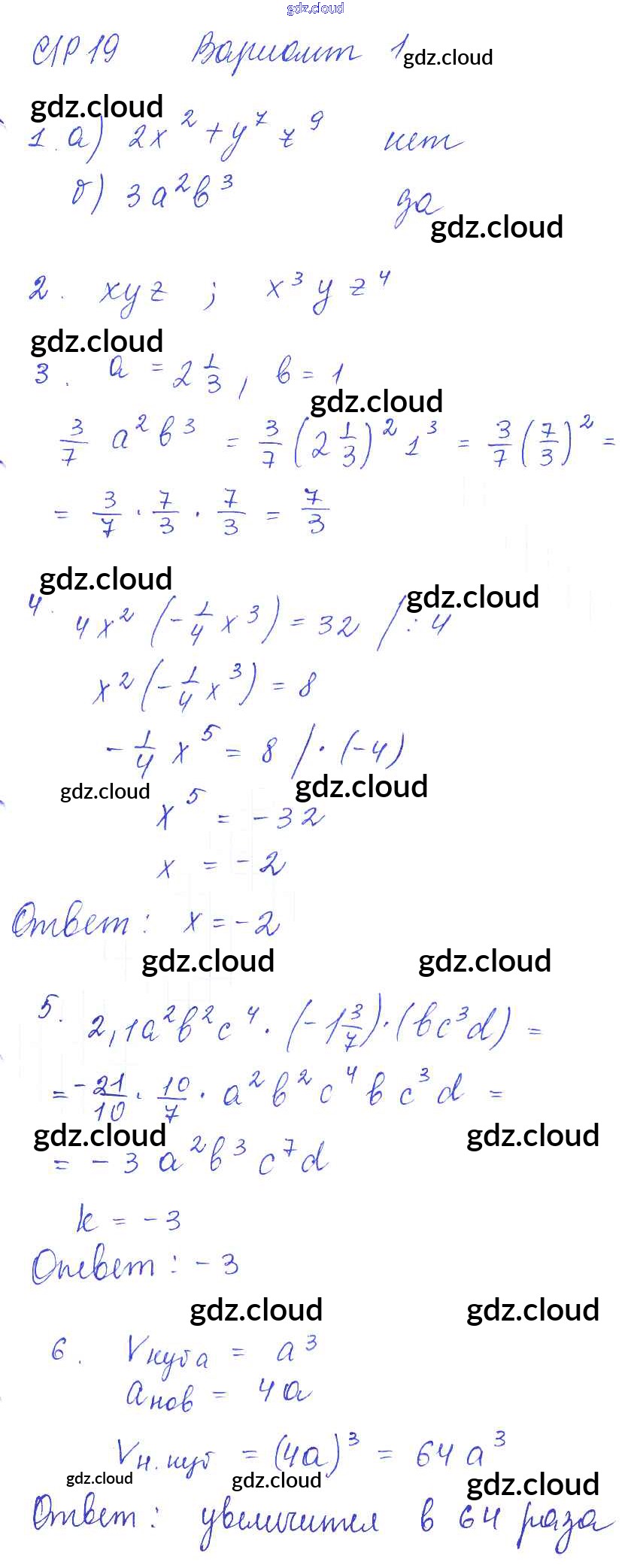 СР-19 Ответы к Самостоятельным работам. Варианты по Алгебре 7 класс Дидактические материалы Попов УМК   Экзамен