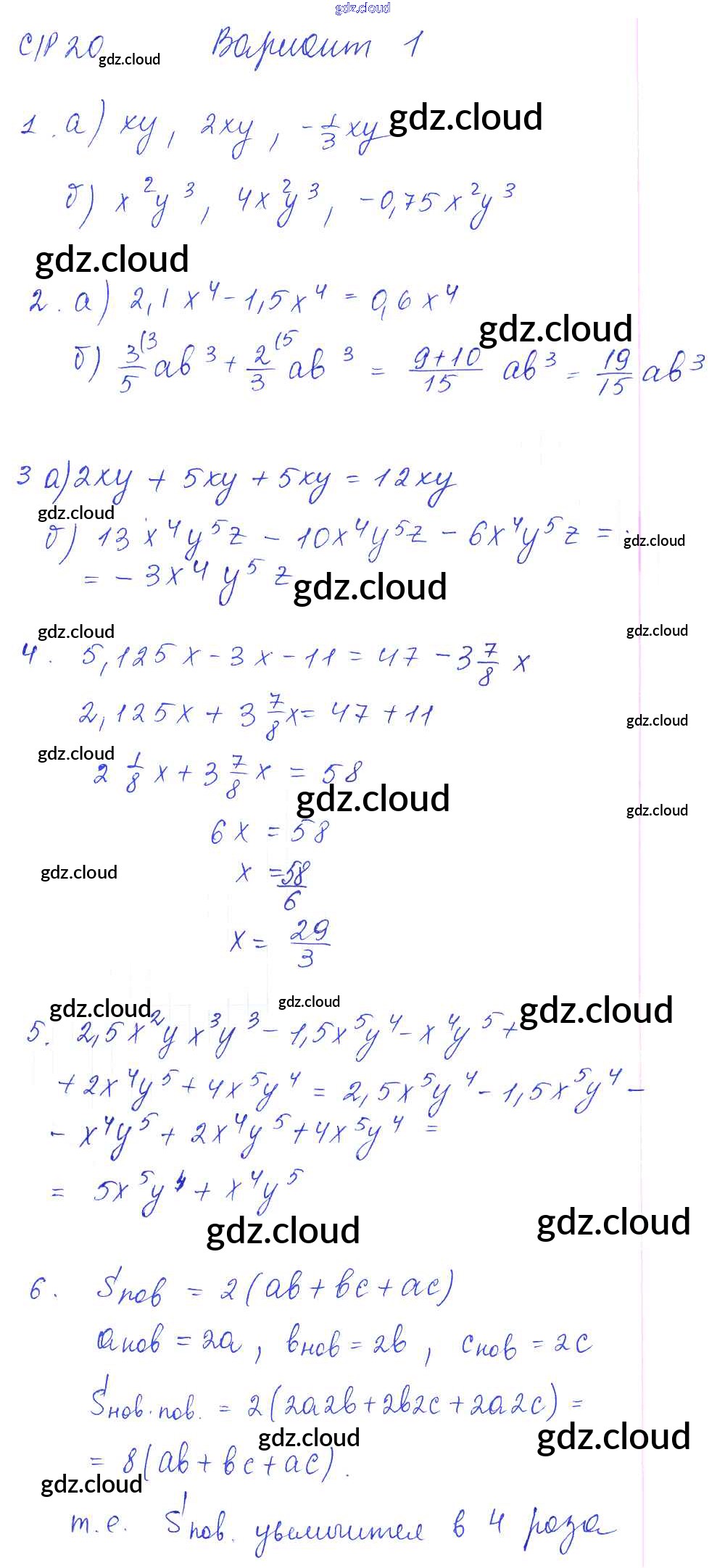 СР-20 Ответы к Самостоятельным работам. Варианты по Алгебре 7 класс Дидактические материалы Попов УМК   Экзамен