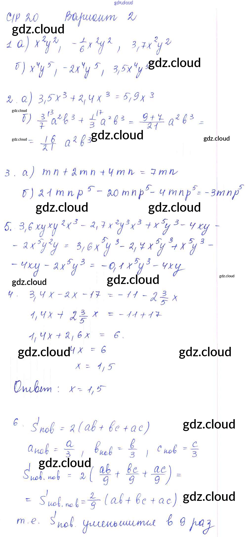 СР-20 Ответы к Самостоятельным работам. Варианты по Алгебре 7 класс Дидактические материалы Попов УМК   Экзамен