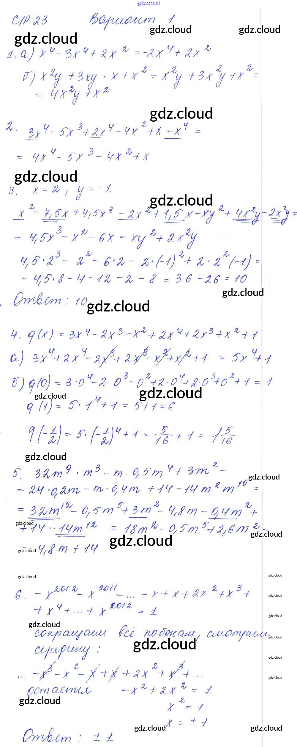 СР-23 Ответы к Самостоятельным работам. Варианты по Алгебре 7 класс Дидактические материалы Попов УМК   Экзамен