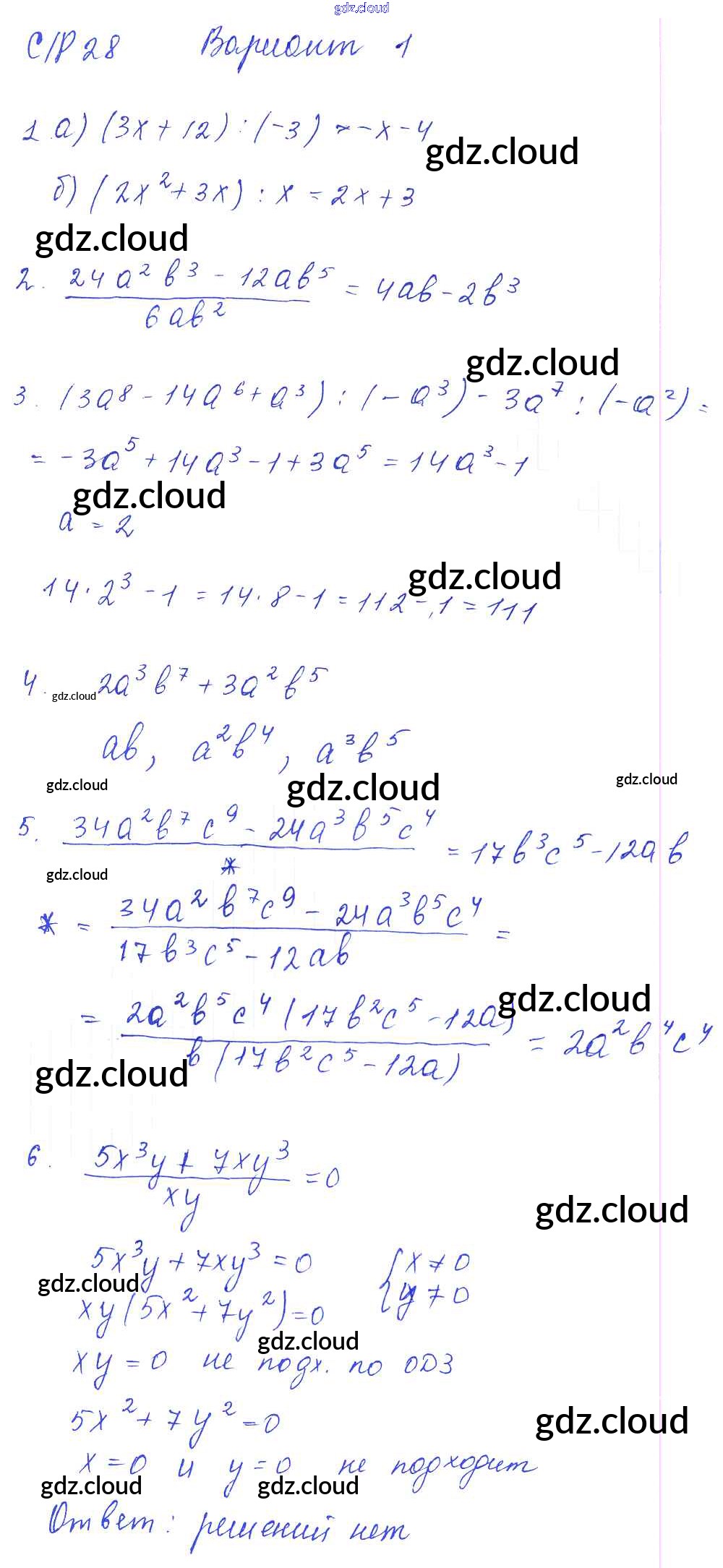 СР-28 Ответы к Самостоятельным работам. Варианты по Алгебре 7 класс Дидактические материалы Попов УМК   Экзамен