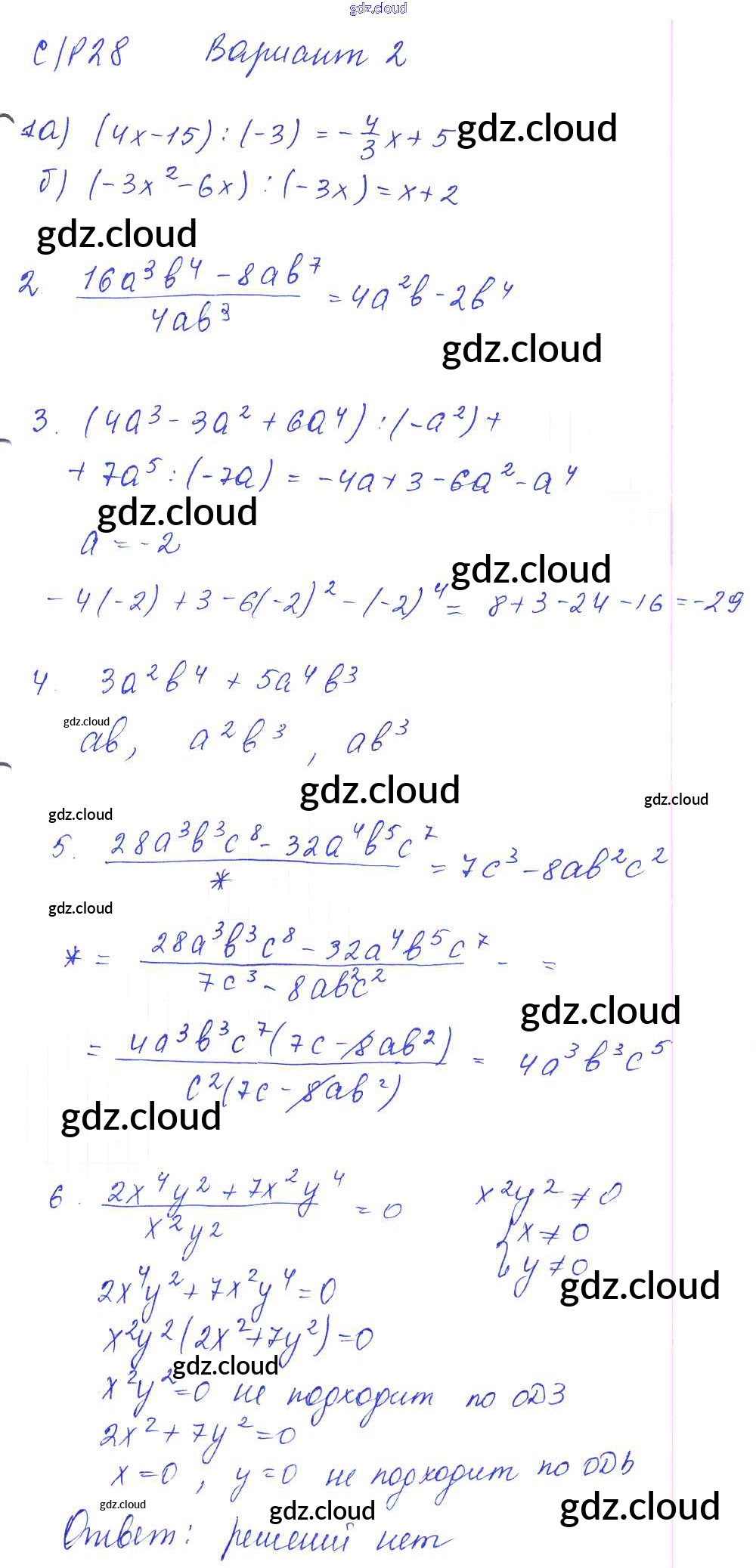 СР-28 Ответы к Самостоятельным работам. Варианты по Алгебре 7 класс Дидактические материалы Попов УМК   Экзамен