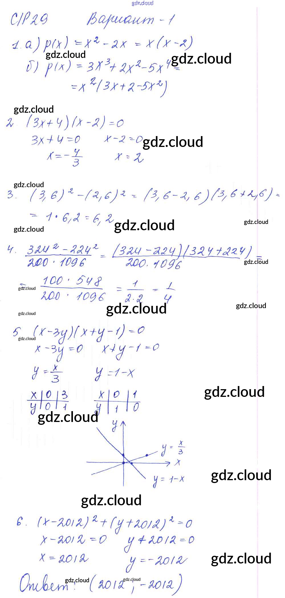 СР-29 Ответы к Самостоятельным работам. Варианты по Алгебре 7 класс Дидактические материалы Попов УМК   Экзамен