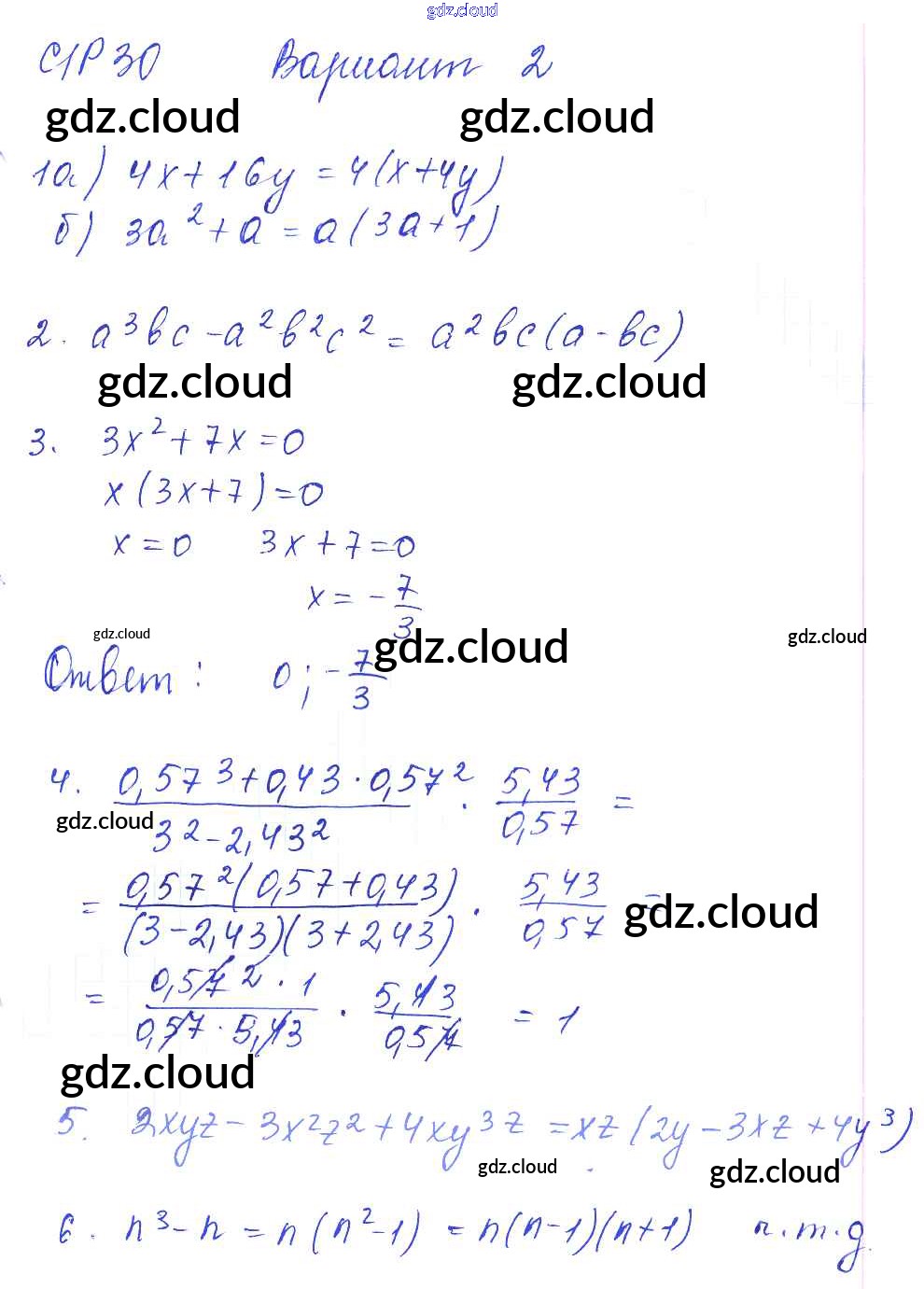 СР-30 Ответы к Самостоятельным работам. Варианты по Алгебре 7 класс Дидактические материалы Попов УМК   Экзамен