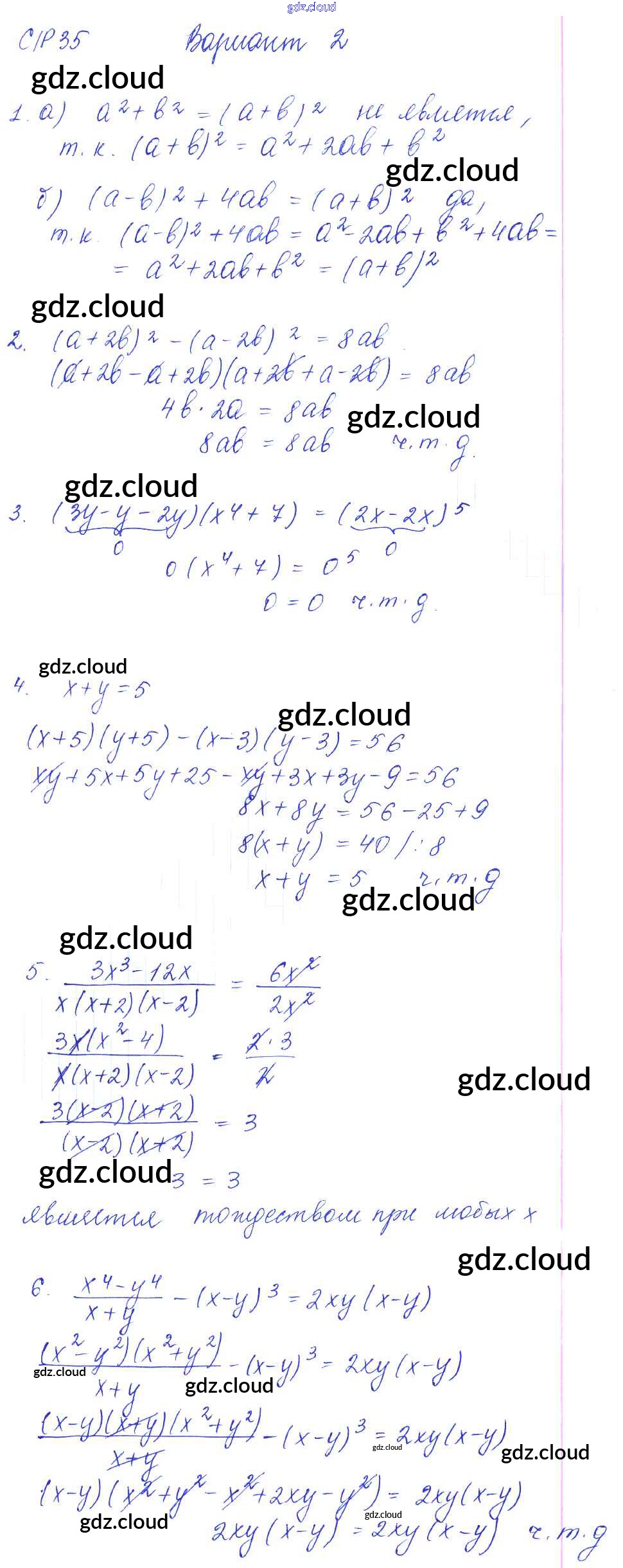 СР-35 Ответы к Самостоятельным работам. Варианты по Алгебре 7 класс Дидактические материалы Попов УМК   Экзамен