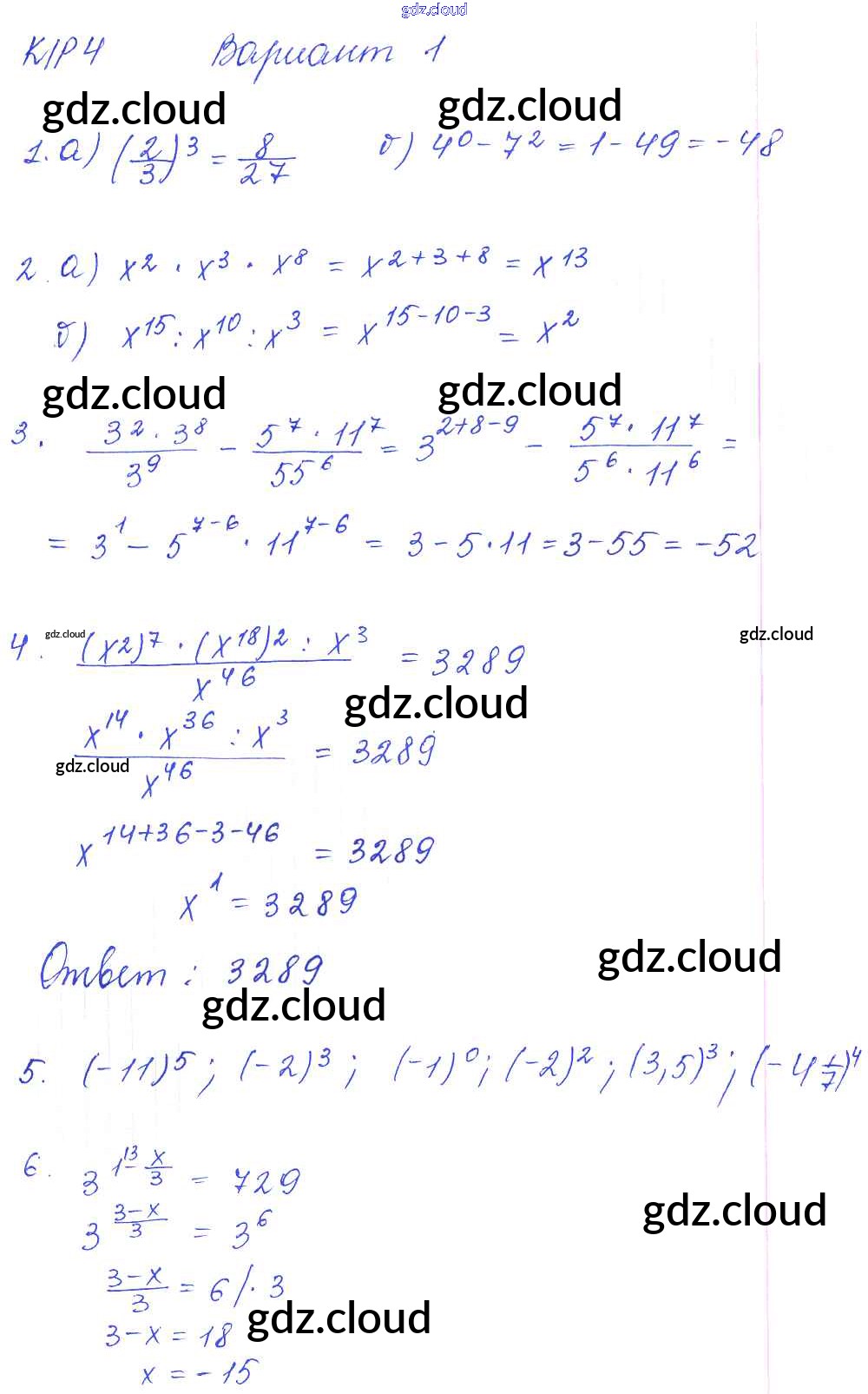 КР-4 Ответы к Контрольным работам. Варианты по Алгебре 7 класс Дидактические материалы Попов УМК Экзамен