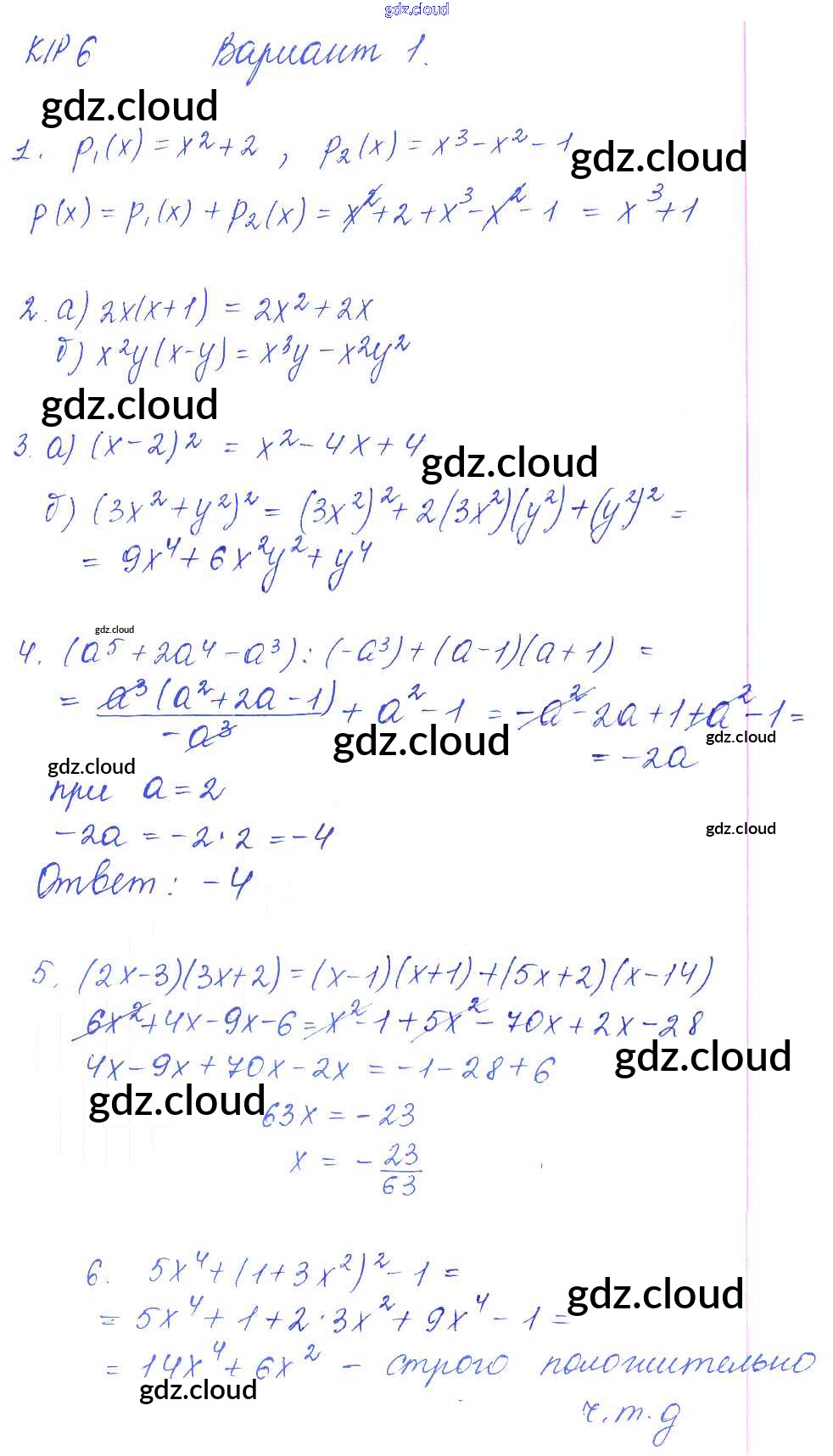 КР-6 Ответы к Контрольным работам. Варианты по Алгебре 7 класс Дидактические материалы Попов УМК Экзамен