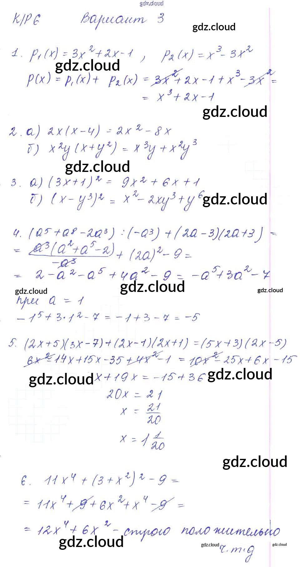 КР-6 Ответы к Контрольным работам. Варианты по Алгебре 7 класс Дидактические материалы Попов УМК Экзамен