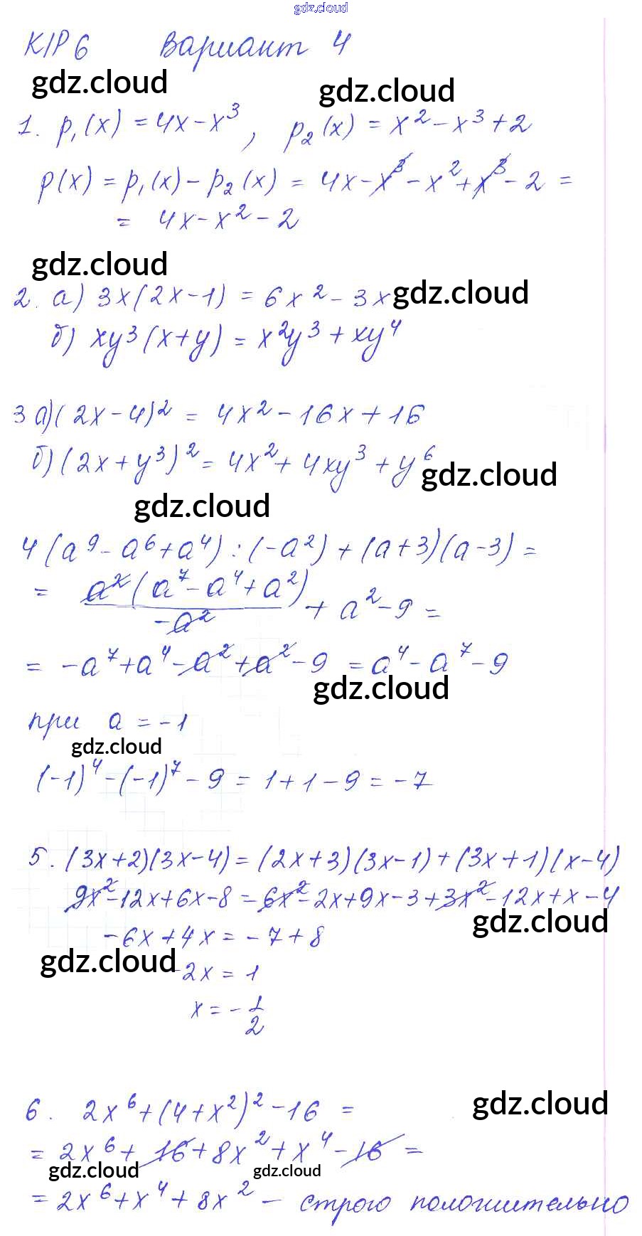 КР-6 Ответы к Контрольным работам. Варианты по Алгебре 7 класс Дидактические материалы Попов УМК Экзамен