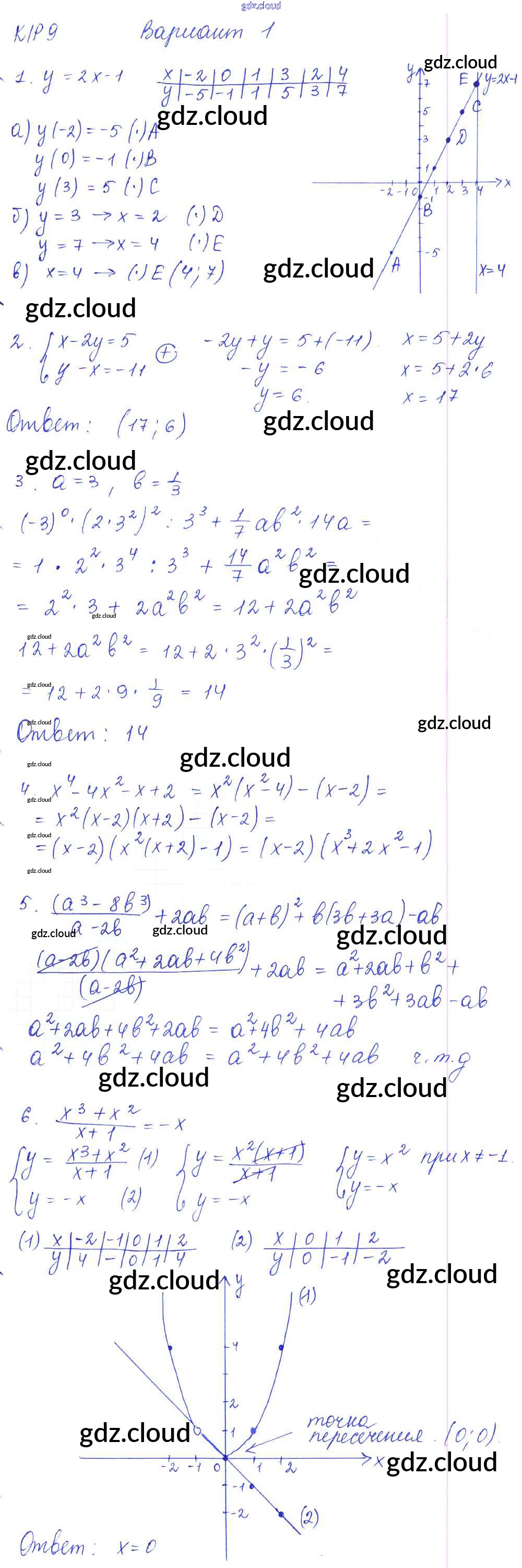 КР-9 Ответы к Контрольным работам. Варианты по Алгебре 7 класс Дидактические материалы Попов УМК Экзамен