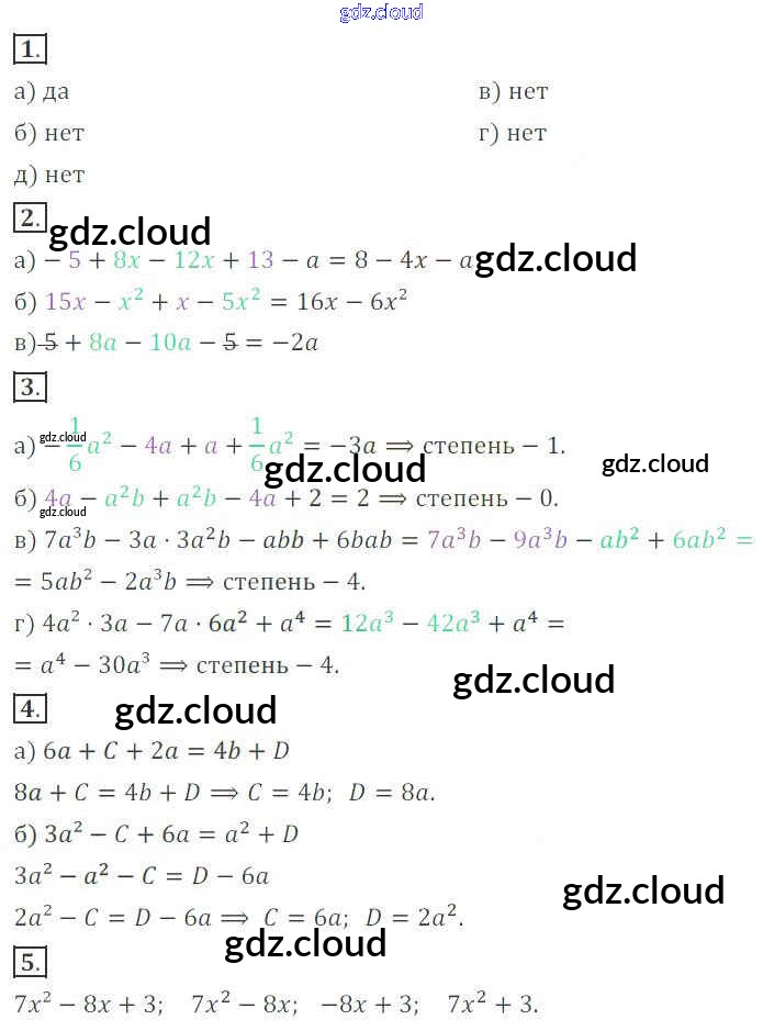 Ответ на задание 4 Дидактические материалы Алгебра  за 7 (седьмой) класс Потапов, Шевкин МГУ - школе  2017