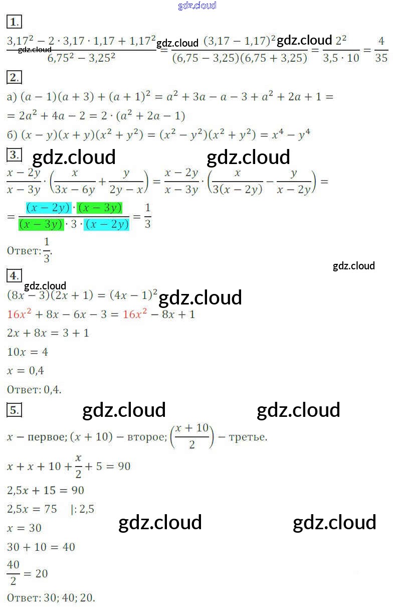 КР-7. Варианты Ответы к Контрольным работам по Алгебре 7 класс Дидактические материалы Потапов МГУ - школе   Просвещение
