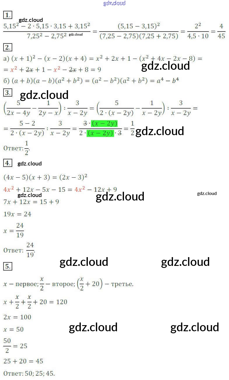 КР-7. Варианты Ответы к Контрольным работам по Алгебре 7 класс Дидактические материалы Потапов МГУ - школе Просвещение