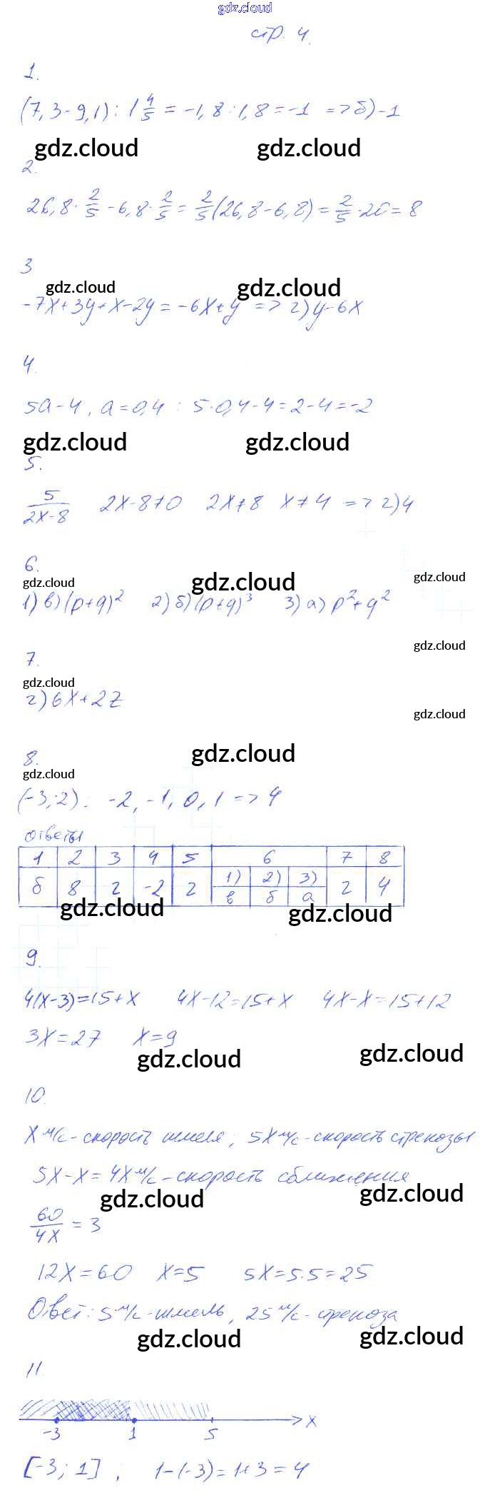 Ответ на задание 1 Проверочные работы Алгебра  за 7 (седьмой) класс Александрова УМК  2020