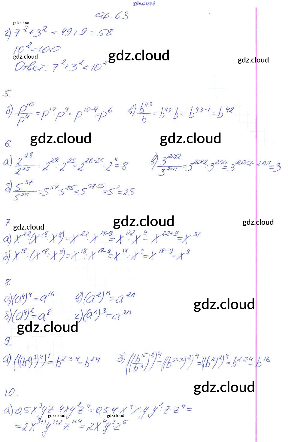 Ответ на задание 63 Рабочая тетрадь Алгебра за 7 (седьмой) класс Ключникова, Комиссарова УМК 2013 ФГОС онлайн и без номера телефона.