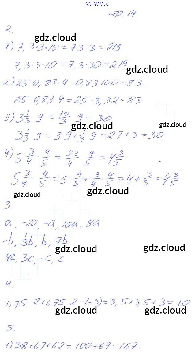 Ответ на задание стр.14 Рабочая тетрадь Алгебра за 7 (седьмой) класс Колягин, Ткачева, Федорова, Шабунин УМК 2017 Часть 1, 2