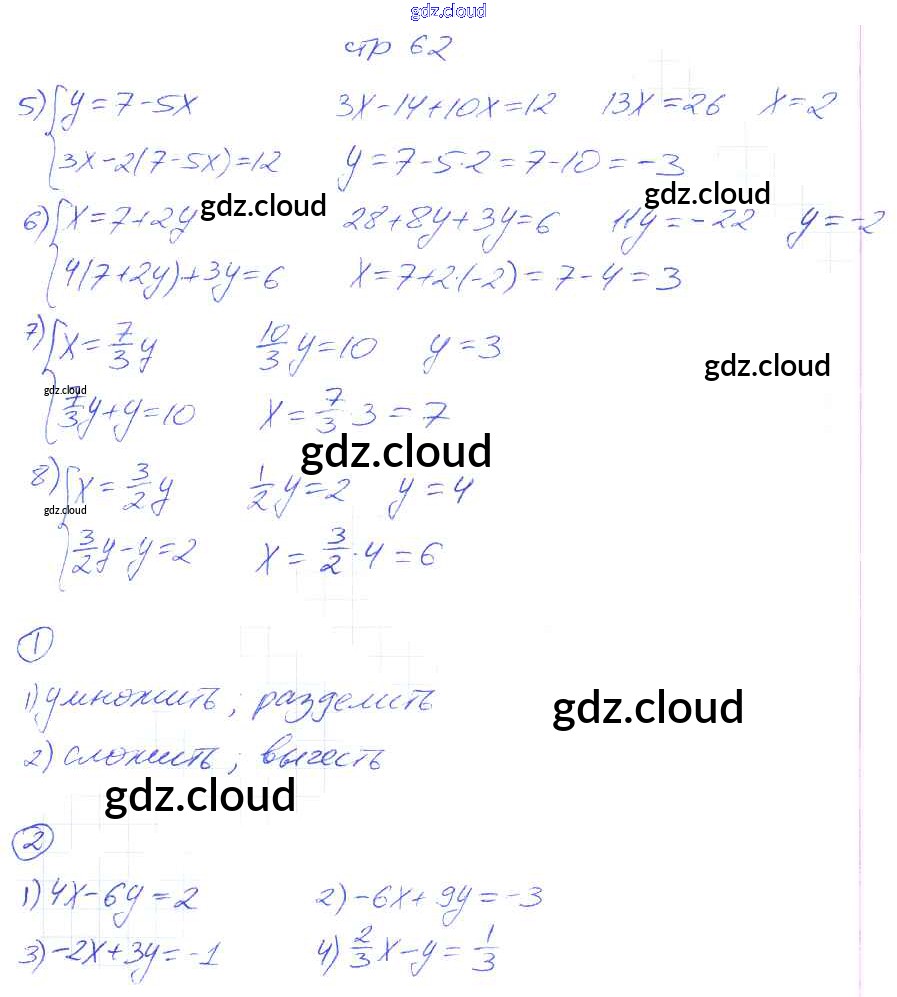 Ответ на задание стр.62 Рабочая тетрадь Алгебра  за 7 (седьмой) класс Колягин, Ткачева, Федорова, Шабунин УМК  2017 Часть 1, 2