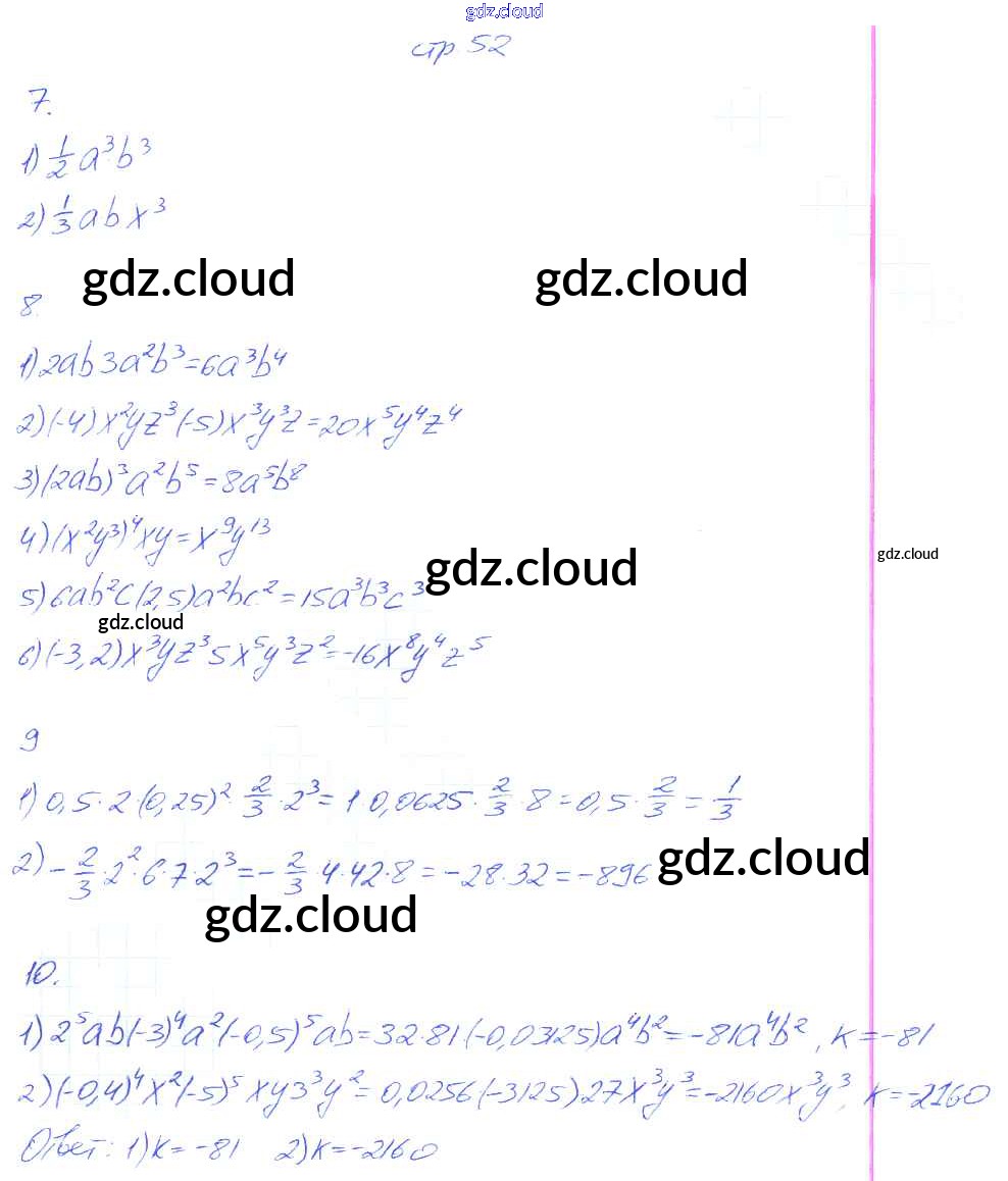 Ответ на задание стр.52 Рабочая тетрадь Алгебра за 7 (седьмой) класс Колягин, Ткачева, Федорова, Шабунин УМК 2017 Часть 1, 2
