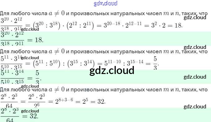 Ответы. §17. Умножение и деление степеней  по Алгебре 7 класс Рабочая тетрадь Миндюк УМК  Часть 1, 2 Просвещение