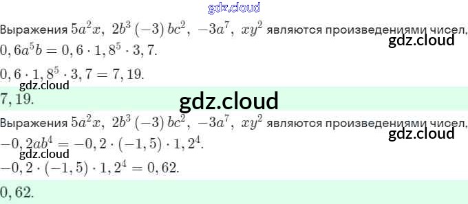 Ответы. §19. Одночлен и его стандартный вид по Алгебре 7 класс Рабочая тетрадь Миндюк УМК Часть 1, 2 Просвещение