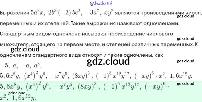 Ответы. §19. Одночлен и его стандартный вид  по Алгебре 7 класс Рабочая тетрадь Миндюк УМК  Часть 1, 2 Просвещение