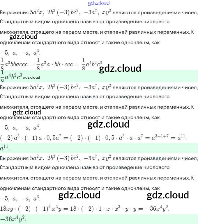 Ответы. §19. Одночлен и его стандартный вид  по Алгебре 7 класс Рабочая тетрадь Миндюк УМК  Часть 1, 2 Просвещение