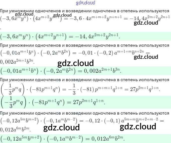 Ответы. §20. Умножение одночленов. Возведение одночлена в степень по Алгебре 7 класс Рабочая тетрадь Миндюк УМК Часть 1, 2 Просвещение