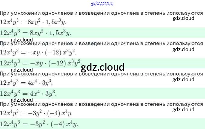 Ответы. §20. Умножение одночленов. Возведение одночлена в степень  по Алгебре 7 класс Рабочая тетрадь Миндюк УМК  Часть 1, 2 Просвещение