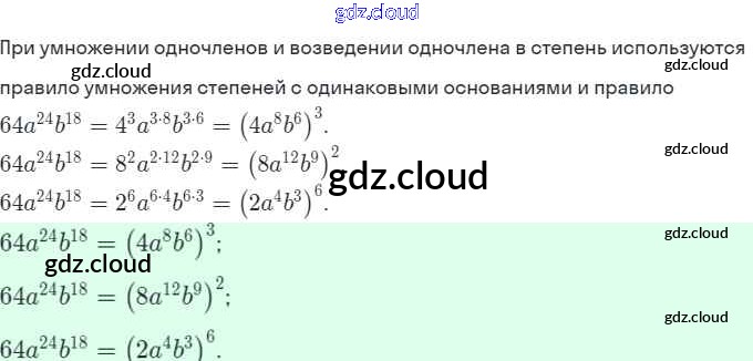 Ответы. §20. Умножение одночленов. Возведение одночлена в степень  по Алгебре 7 класс Рабочая тетрадь Миндюк УМК  Часть 1, 2 Просвещение