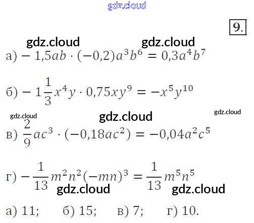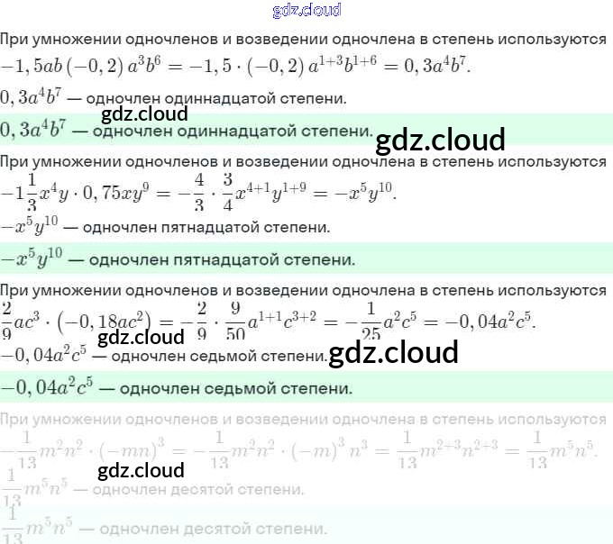 Ответы. §20. Умножение одночленов. Возведение одночлена в степень  по Алгебре 7 класс Рабочая тетрадь Миндюк УМК  Часть 1, 2 Просвещение