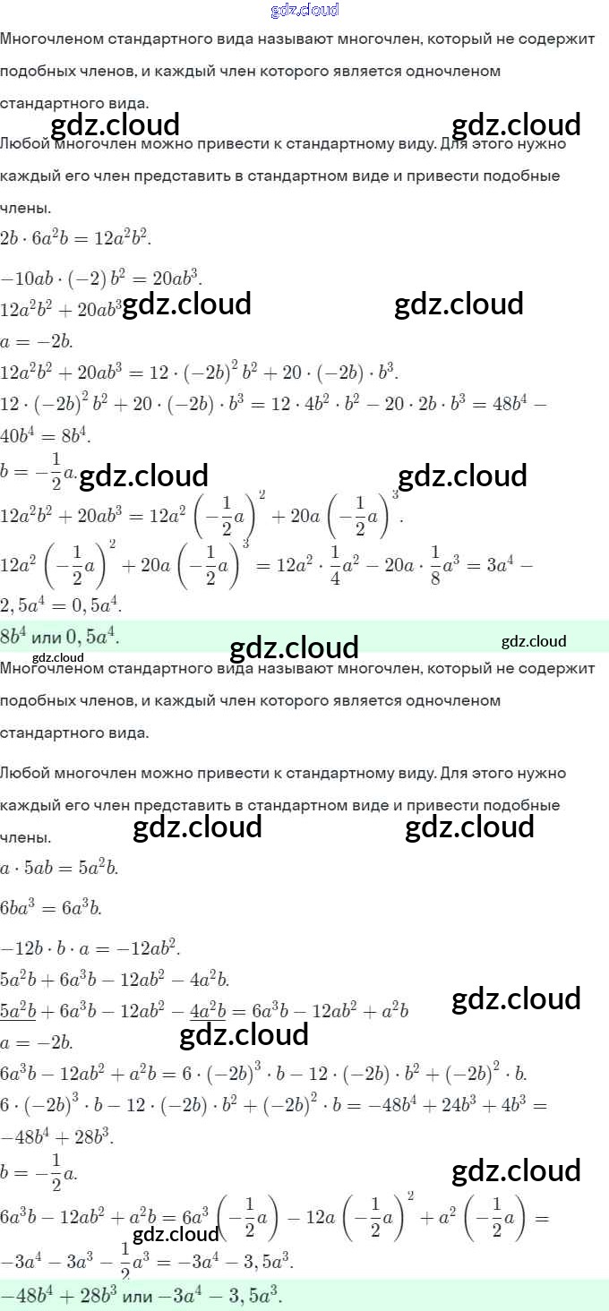 Ответы. §22. Многочлен и его стандартный вид по Алгебре 7 класс Рабочая тетрадь Миндюк УМК Часть 1, 2 Просвещение