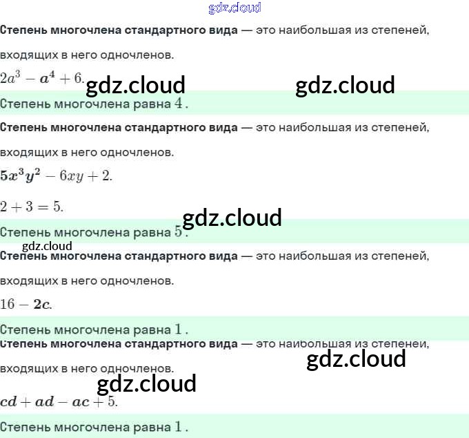 Ответы. §22. Многочлен и его стандартный вид  по Алгебре 7 класс Рабочая тетрадь Миндюк УМК  Часть 1, 2 Просвещение