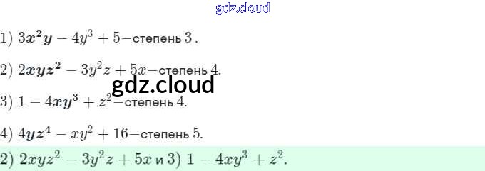 Ответы. §22. Многочлен и его стандартный вид  по Алгебре 7 класс Рабочая тетрадь Миндюк УМК  Часть 1, 2 Просвещение