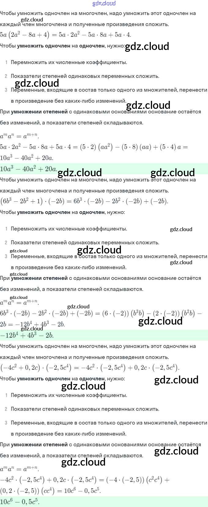 Ответы. §24. Умножение одночлена на многочлен  по Алгебре 7 класс Рабочая тетрадь Миндюк УМК  Часть 1, 2 Просвещение
