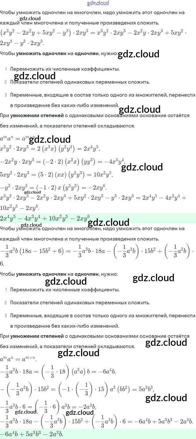 Ответы. §24. Умножение одночлена на многочлен  по Алгебре 7 класс Рабочая тетрадь Миндюк УМК  Часть 1, 2 Просвещение