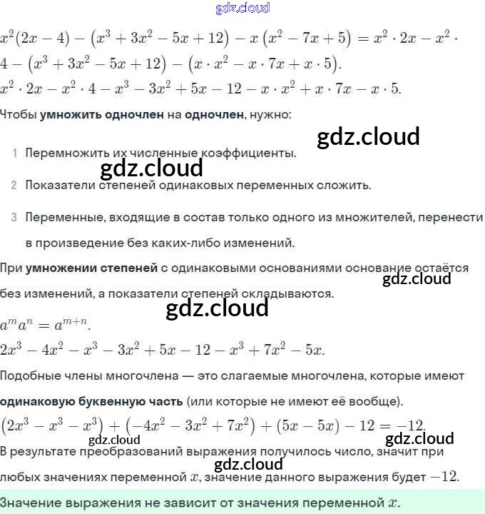 Ответы. §24. Умножение одночлена на многочлен  по Алгебре 7 класс Рабочая тетрадь Миндюк УМК  Часть 1, 2 Просвещение
