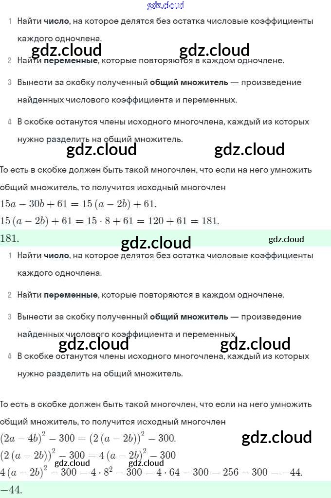 Ответы. §25. Вынесение общего множителя за скобки по Алгебре 7 класс Рабочая тетрадь Миндюк УМК Часть 1, 2 Просвещение
