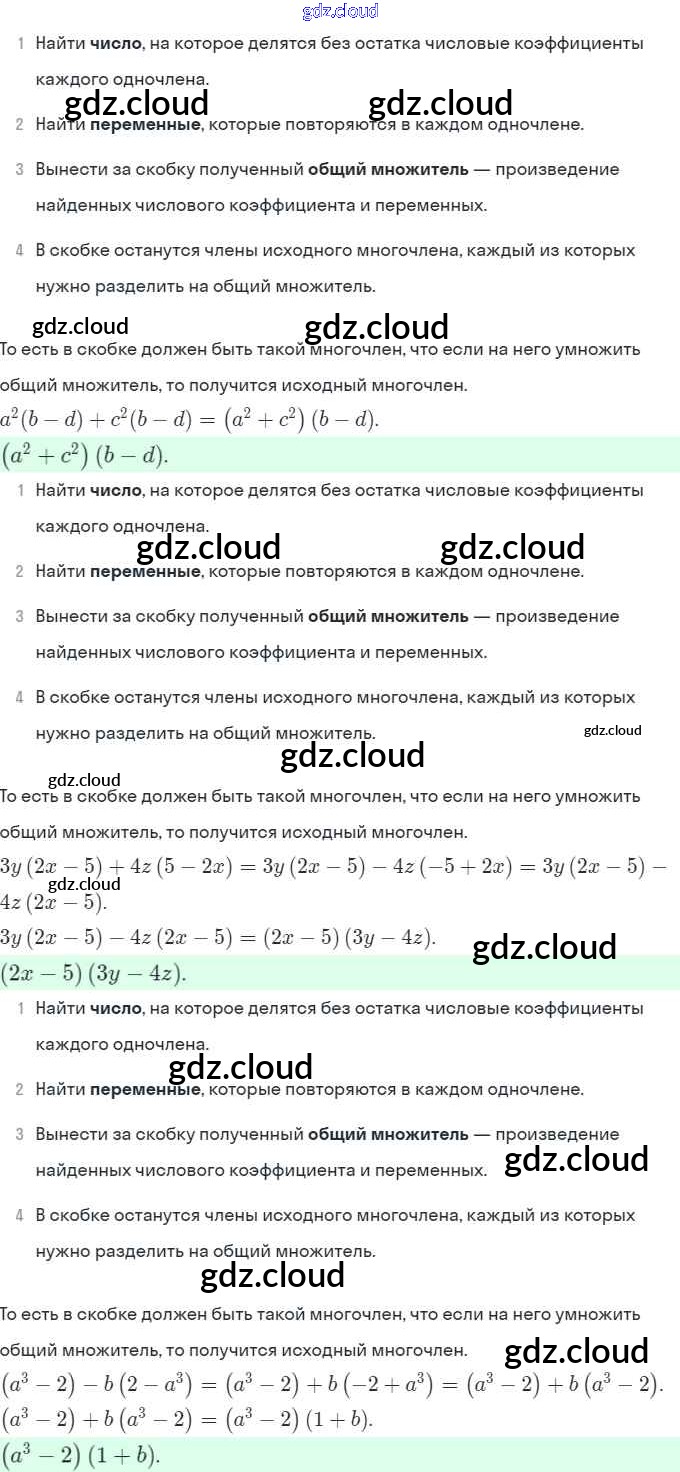 Ответы. §25. Вынесение общего множителя за скобки  по Алгебре 7 класс Рабочая тетрадь Миндюк УМК  Часть 1, 2 Просвещение