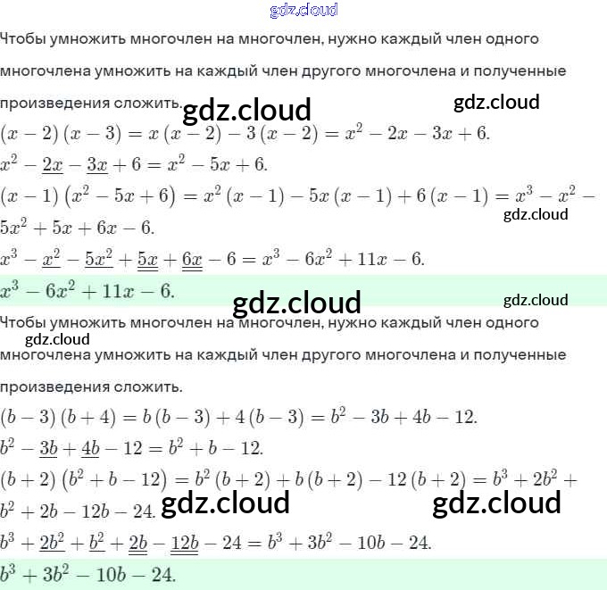 Ответы. §26. Умножение многочлена на многочлен  по Алгебре 7 класс Рабочая тетрадь Миндюк УМК  Часть 1, 2 Просвещение