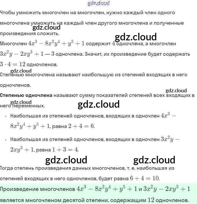 Ответы. §26. Умножение многочлена на многочлен по Алгебре 7 класс Рабочая тетрадь Миндюк УМК Часть 1, 2 Просвещение