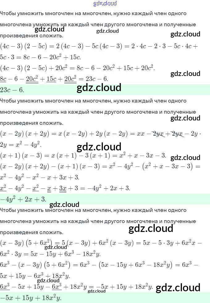 Ответы. §26. Умножение многочлена на многочлен по Алгебре 7 класс Рабочая тетрадь Миндюк УМК Часть 1, 2 Просвещение