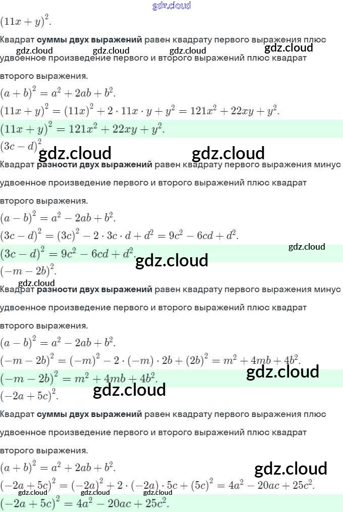 Ответы. §28. Возведение в квадрат и в куб суммы и разности двух выражений  по Алгебре 7 класс Рабочая тетрадь Миндюк УМК  Часть 1, 2 Просвещение