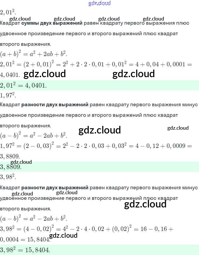 Ответы. §28. Возведение в квадрат и в куб суммы и разности двух выражений  по Алгебре 7 класс Рабочая тетрадь Миндюк УМК  Часть 1, 2 Просвещение